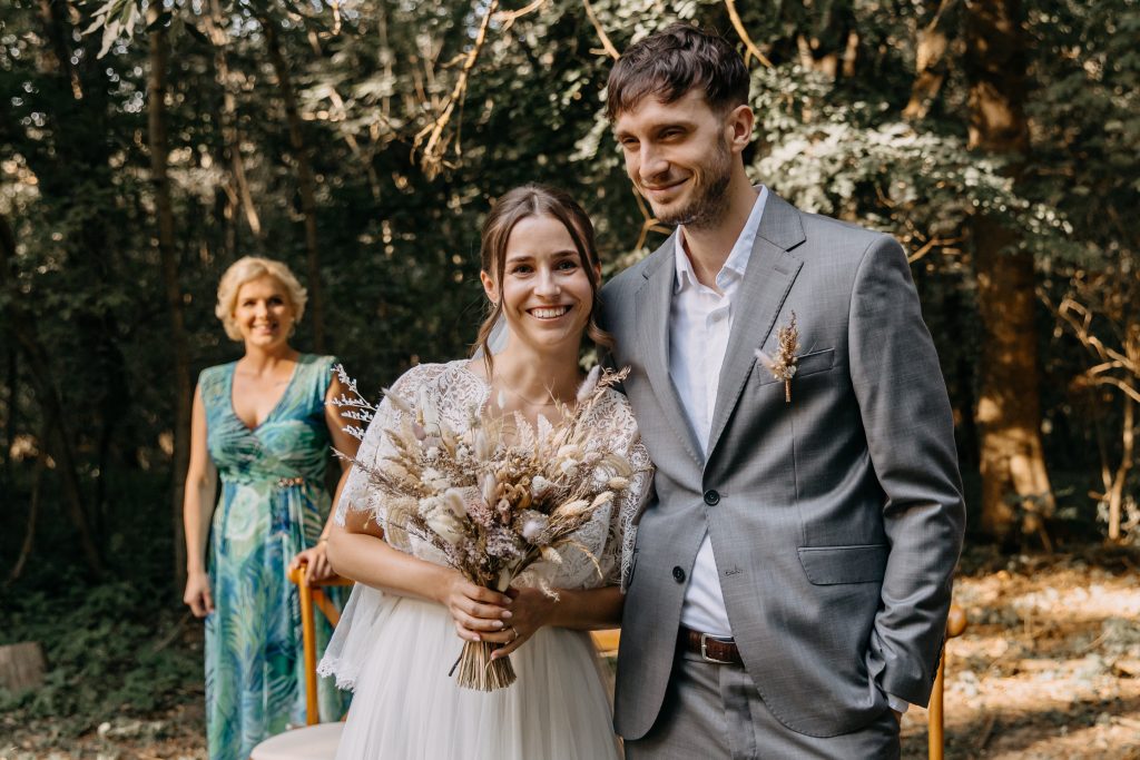 Trixi és Huba a Sztrilich Pál Cserkészparkba vitték a DŰNE csomagot. Erre az erdei helyszínre rendszer visszatérők a csomagjaim, annyira jól passzolnak ide. Az ő választásuk a szürke textiles verzióra esett, ami a nagy napjukon így mutatott: