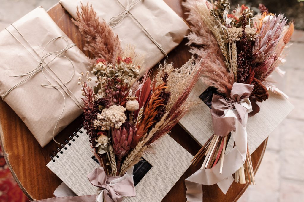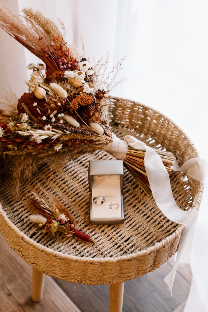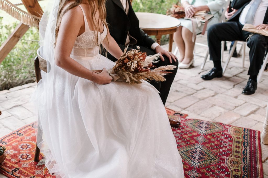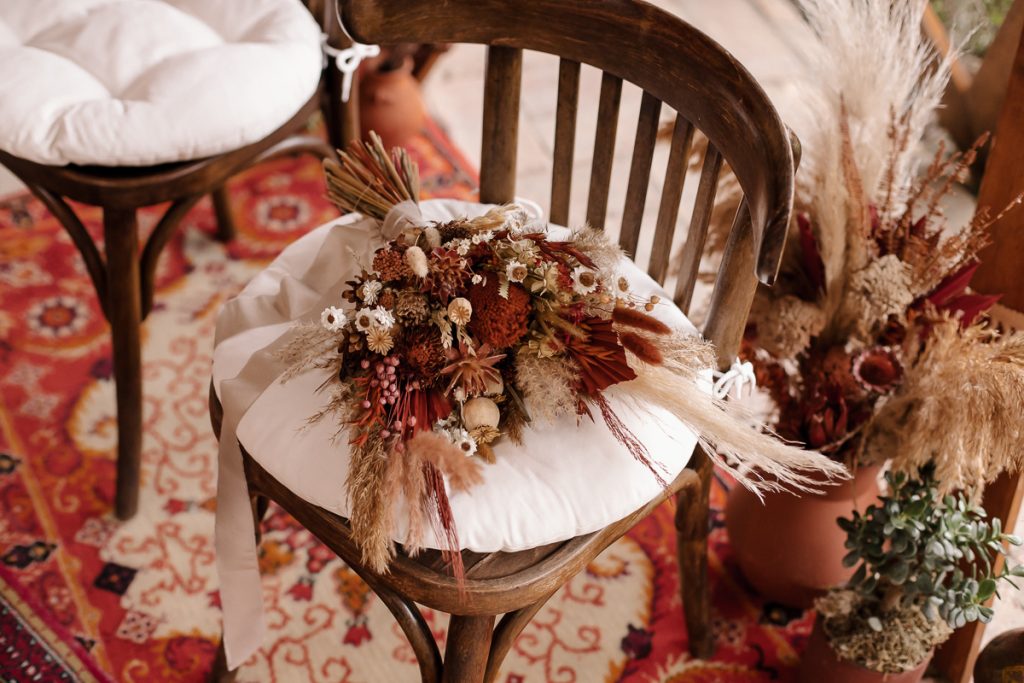 Lilla és Szilárd a TERRA csomagot választották. A helyszínüket már előző este feldíszíthették a családjukkal, így egyáltalán nem kellett kapkodniuk vele, jó élmény volt számukra a folyamat is. Az alapcsomagnál nekik több díszre volt szükségük, mert kicsit nagyobb násznéppel ünnepeltek, természetesen a csomag bővítése nem jelentett gondot. 🙂 Szívesen készítettem nekik még plusz díszeket. Lilla csokrát is én kötöttem, valamint szülőköszöntő ajándéknak szánt csokrokat is én készíthettem el. A szertartásuk helyszínét a szőnyeg, boldogságkapu és az apróbb díszei nagyon jól feldobták.