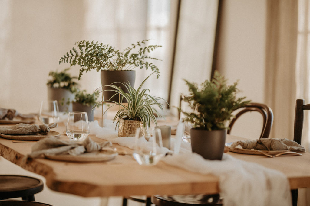 Az esküvői dekoráció fogalma szinte teljesen egybefonódott a virágdekorral, és valljuk be, tényleg nehéz elképzelni az ünnepi helyszínt virágok nélkül. Az alapvető elképzelés a kollekció mögött az, hogy tegyünk egy kísérletet arra, hogy a vágott virágok nagy részét lecseréljük bérelhető cserepes növényekre. (Ne izguljatok, a menyasszonyi csokor helyett persze nem fogok egy cserepes páfrányt ajánlani. 🙂 ) Ez a csomag azoknak szól, akik ezzel az elképzeléssel tudnak azonosulni. 🙂 Természetesen senkit nem szeretnék lebeszélni a virágokról, csupán egy alternatív lehetőségként készítettem össze ezt a kollekciót.